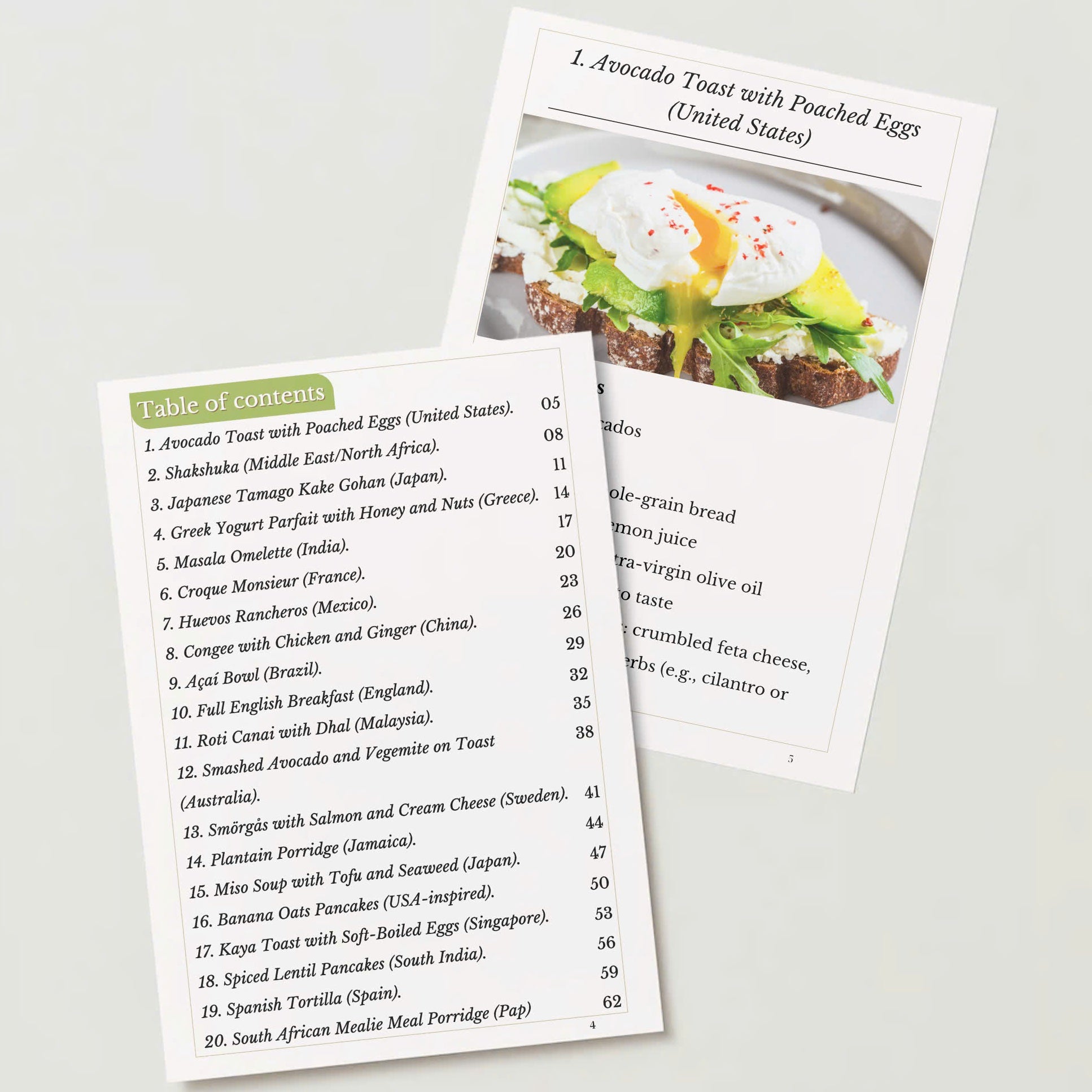 In the hustle and bustle of modern life, finding the time and inspiration to prepare a satisfying, healthy breakfast can be challenging. Many of us rely on quick fixes—pre-packaged bars or sugary cereals—that leave us feeling unsatisfied or sluggish. That’s why the eBook, “Morning Delights: 20 Nutritious Breakfast Recipes from Around the World,” can be a lifesaver. This collection does all the legwork for you, offering diverse, easy-to-follow recipes that will keep both your stomach and taste buds happy. All you need is a few wholesome ingredients, a bit of curiosity, and a willingness to step into the kitchen, ready to explore exciting global flavors.